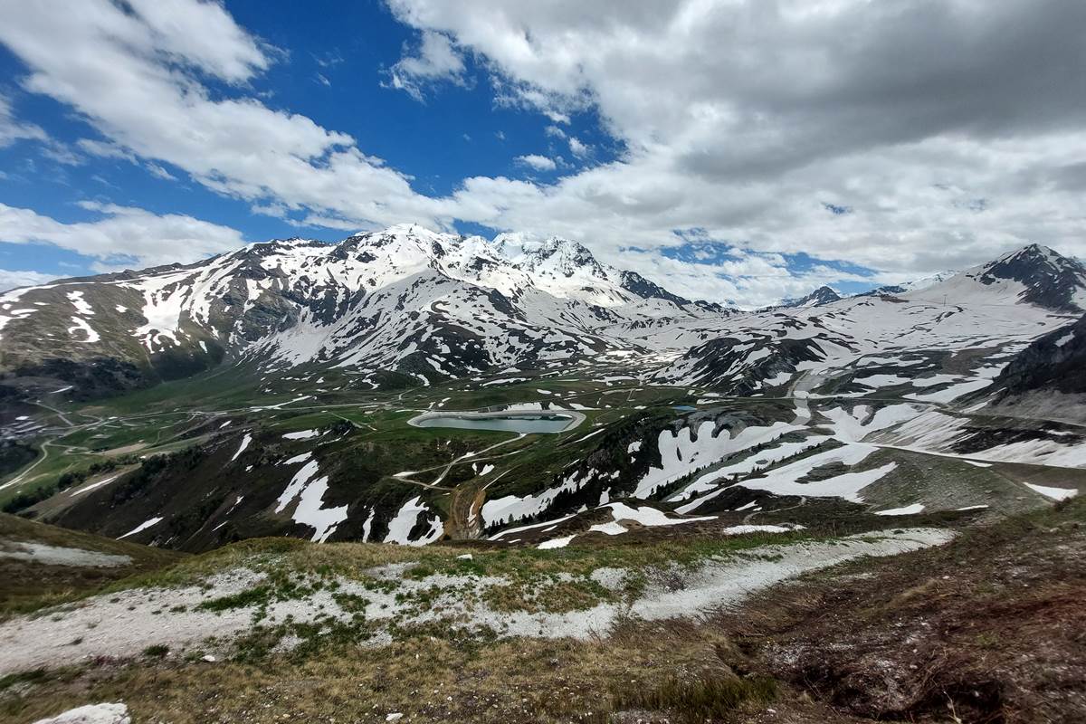 Vue panoramique sur la vallée de la Tarentaise et sur le Mont Blanc.
